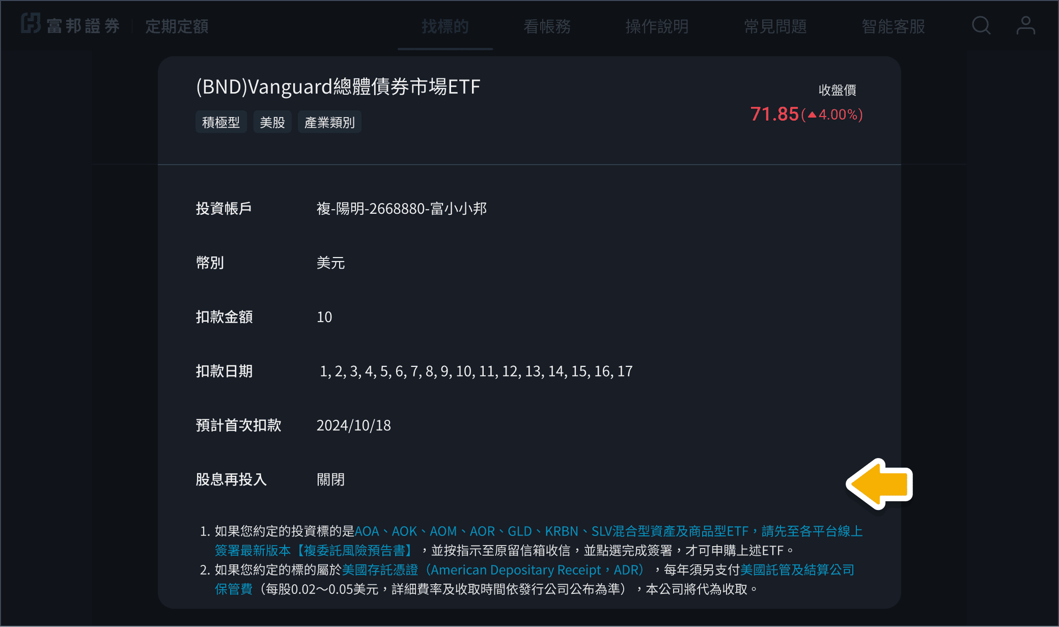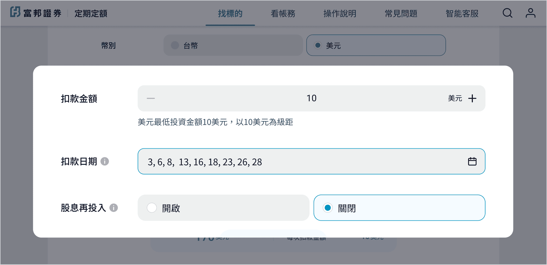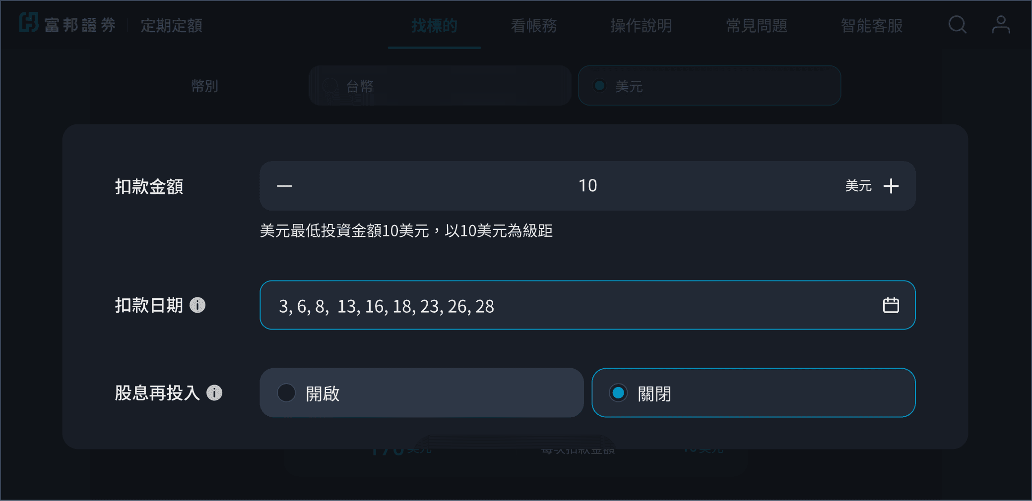 - 交割帳戶須為「富邦銀行台/外幣帳戶」或「連線商業銀行台幣帳戶」。