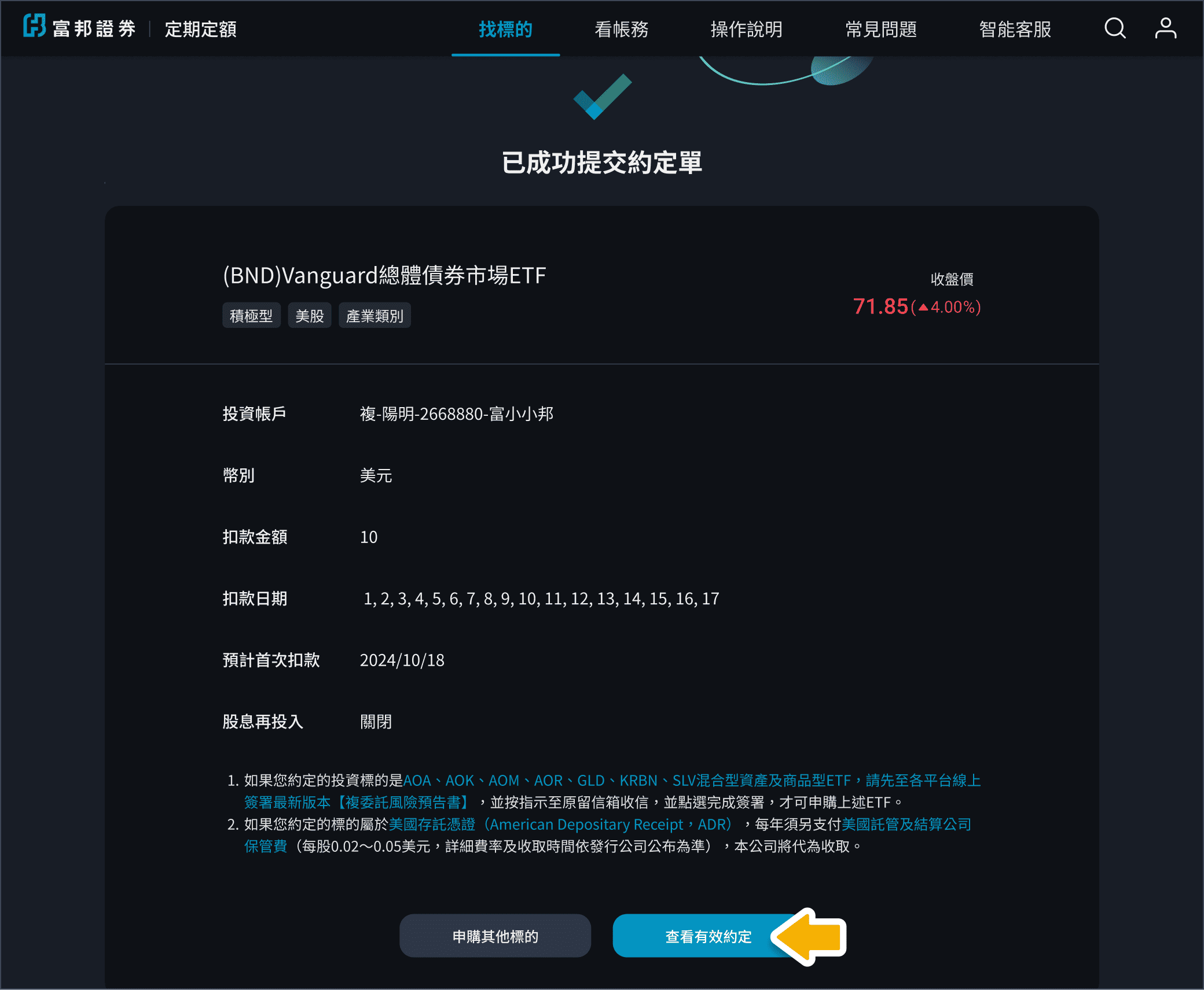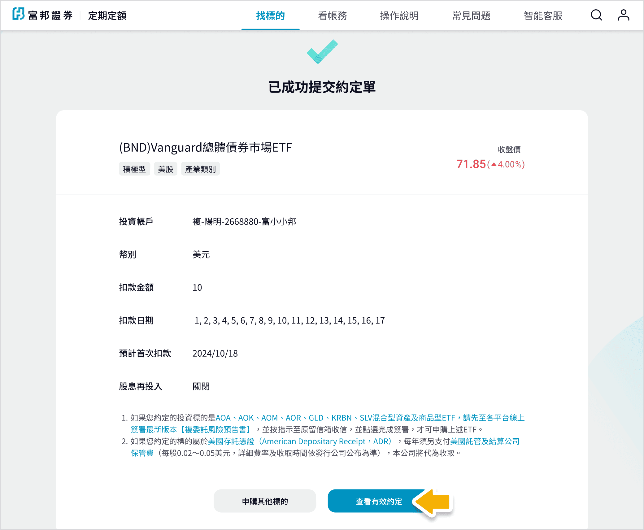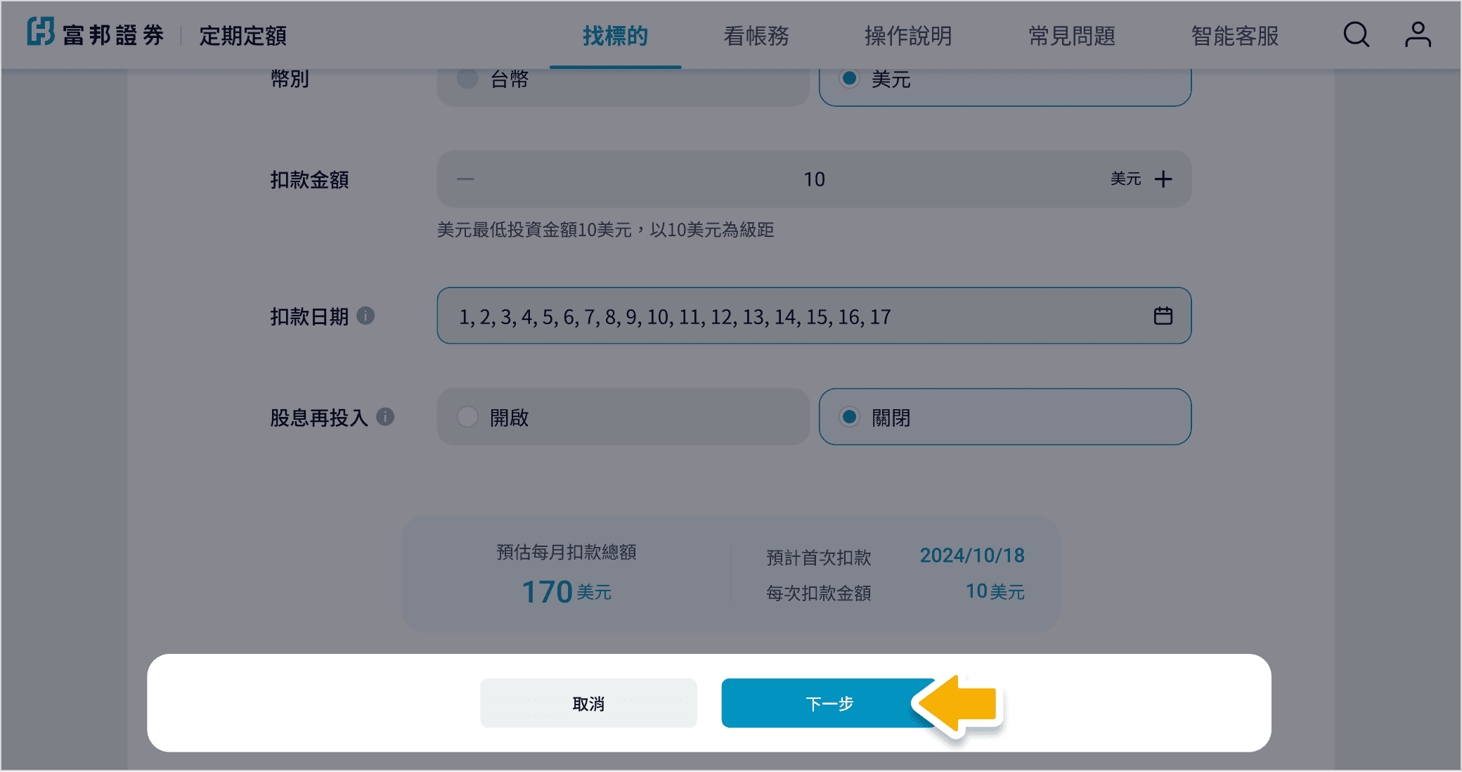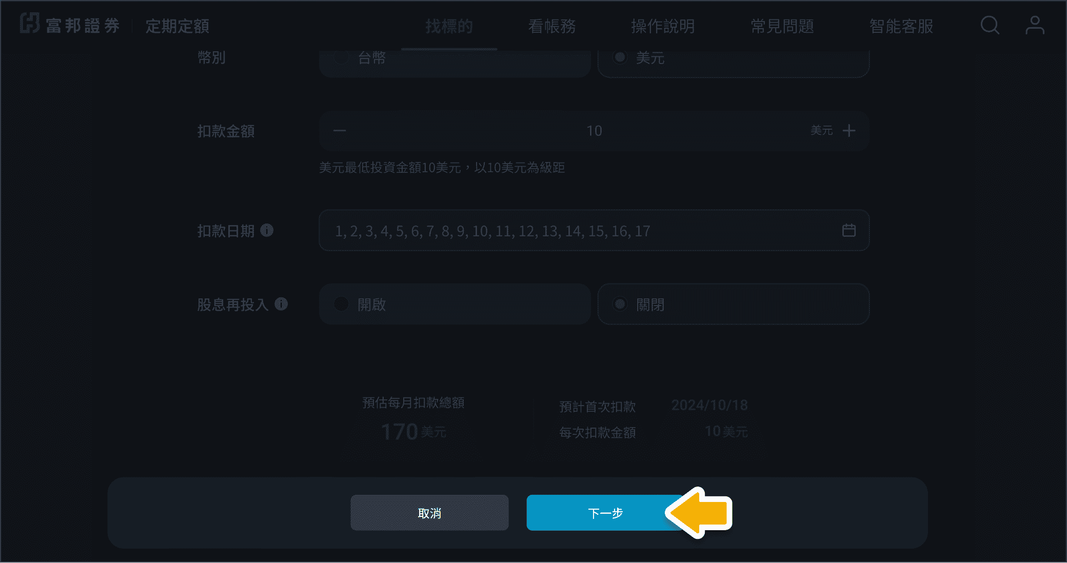 - 交割帳戶須為「富邦銀行台/外幣帳戶」或「連線商業銀行台幣帳戶」。